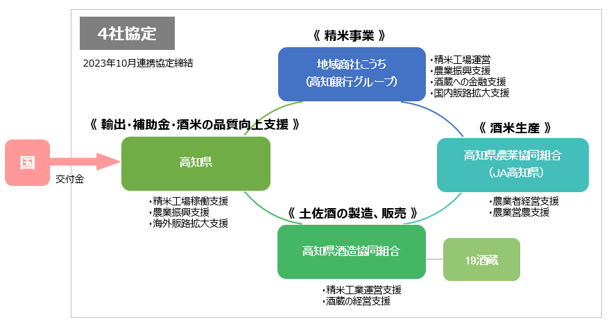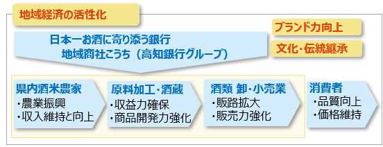 ニュースリリース 2026.03.19 地方創生に資する金融機関等の「特徴的な取組事例」受賞について 高知銀行(頭取 河合祐子)は、内閣官房 地域未来戦略本部事務局が公表する「地方創生に資する金融機関等の特徴的な取組事例」に選定され、3月13日に地方創生担当大臣表彰を受賞しました。 本表彰は、金融機関等の地方創生に資する取り組みのうち、地方公共団体等と連携している事例や、先駆性のある事例などを収集し、創意工夫のある取り組みが各地域に広がることを目的としており、当行は下記の取り組みが評価され、受賞に至りました。 記 表彰された取り組みの概要 表題 こうち酒米精米工場再稼働に向けた取組 概要 当行グループは、地域の主要な観光資源で重要な地域産業でもある土佐酒の生産に使用する酒米の精米体制の安定化などを目的として、高知県・高知県酒造協同組合・高知県農業協同組合と連携し、閉鎖されていた県内唯一の酒米精米工場を再稼働させ、さらなる品質の向上と、精米・醸造・販売までを一体として支える「オール高知」の体制構築を推進した。 精米事業再稼働モデル 別ウィンドウで表示 高知県内バリューチェーンの強化 別ウィンドウで表示 以 上 PDF版はこちら 【本件に関するお問い合わせ】 高知銀行 みらいサポート部 担当:千光士 Tel:088-871-1060 株式会社 高知銀行 高知県高知市堺町2番24号