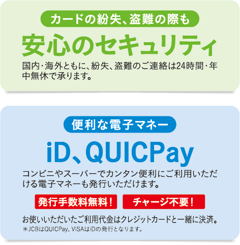 ※VISAカードはiD、JCBカードはQUICPayとなります。
