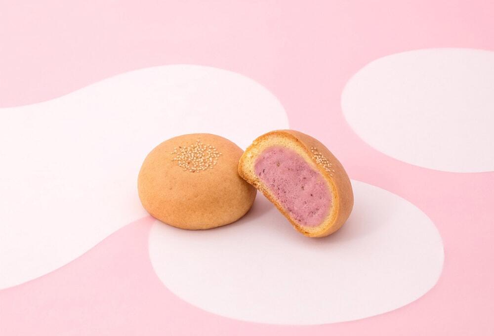 中に包んだ餡子は、白餡に小さく刻んだフリーズドライイチゴとミルクを混ぜ込んだ特製のもので、イチゴの香りや甘酸っぱさ、白餡のコクやミルクのまろやかな風味が調和する、華やかな味わいが楽しめます♪