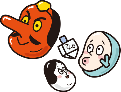 杯は、ひと口で飲める「おかめ」と、長い鼻の「天狗」、口に穴の空いた「ひょっとこ」。